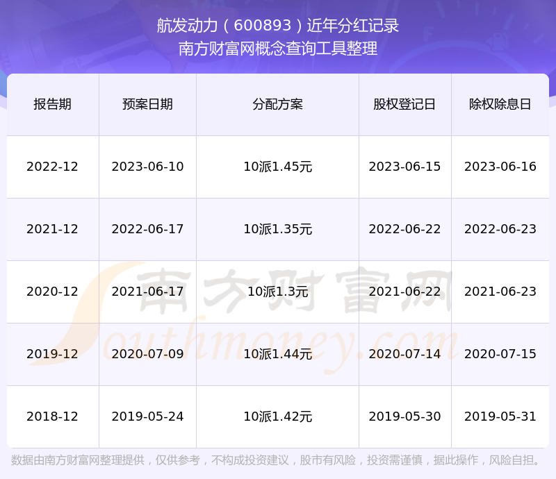 航發(fā)動力最新一次公布的分紅方案:10派1.45元。