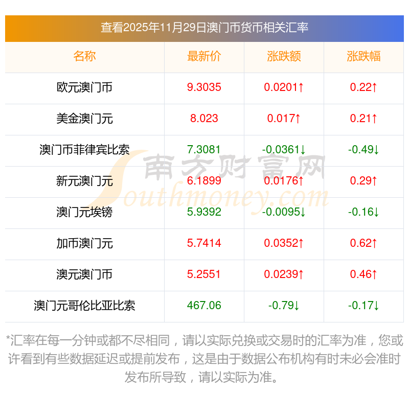 2025年11月29日澳門幣相關(guān)匯率查詢