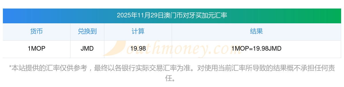 澳門幣對(duì)牙買加元匯率走勢(shì),今日澳門幣對(duì)牙買加元匯率是多少?2025/11/29