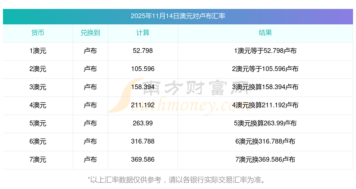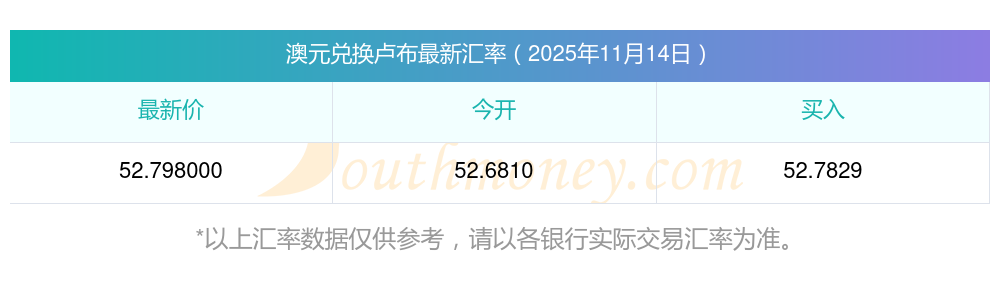 澳元今日匯價表:2025年11月14日5澳元兌盧布匯價多少