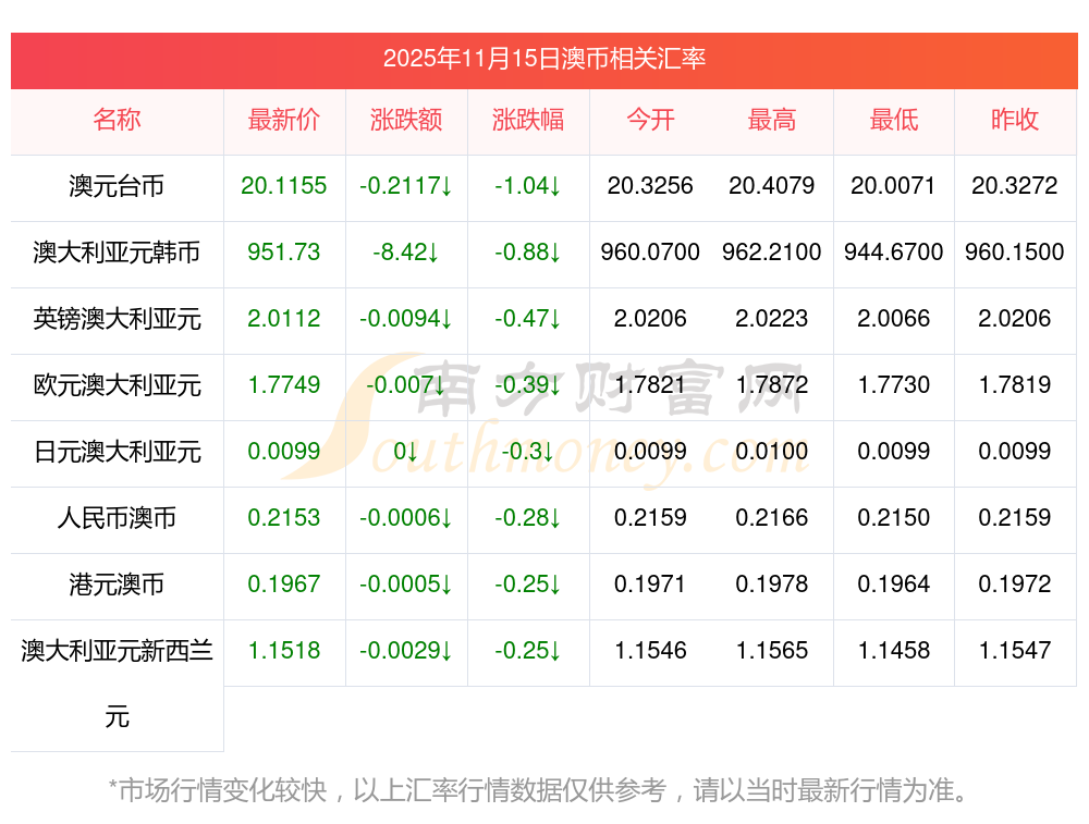 2025年11月15日最新消息,澳幣兌換尼日利亞奈拉最新匯率為940.850500,今開為940.4667,昨收為940.5386,最高為945.7976,最低為937.5247。