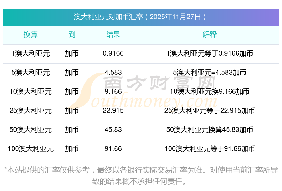 今天55澳大利亞元兌換加幣的最新匯率 附查詢方法11-27