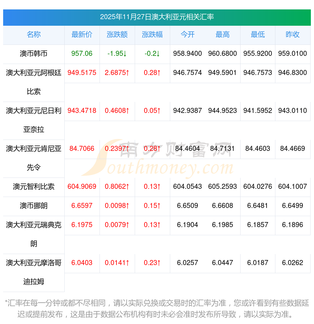 根據2025年11月27日匯率計算,澳大利亞元兌換斐濟幣匯率最新價1.486000,今開價1.4843,昨收價1.4844,最高價1.5031,最低價1.4843。