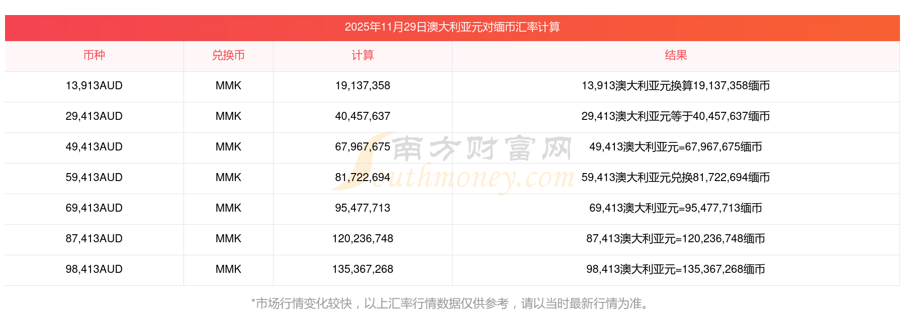 南方財(cái)富網(wǎng)為您提供澳大利亞元對(duì)緬幣匯率最新價(jià)格詳情。