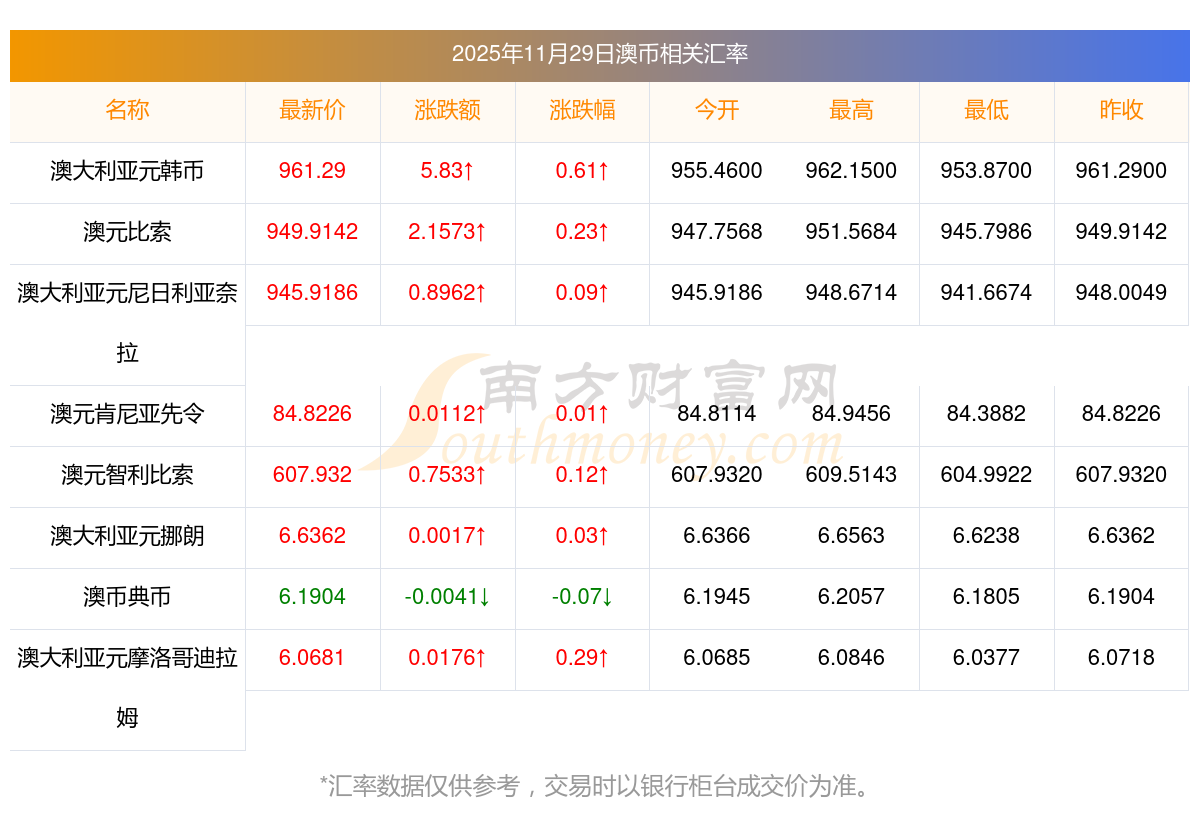 2025年11月29日最新消息,澳幣兌換緬幣最新匯率為1375.501900,今開為1372.1407,昨收為1375.5019,最高為1377.4966,最低為1369.3053。