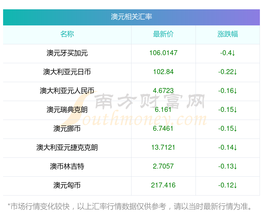 南方財(cái)富網(wǎng)為您提供澳元對加元匯率最新價格詳情。