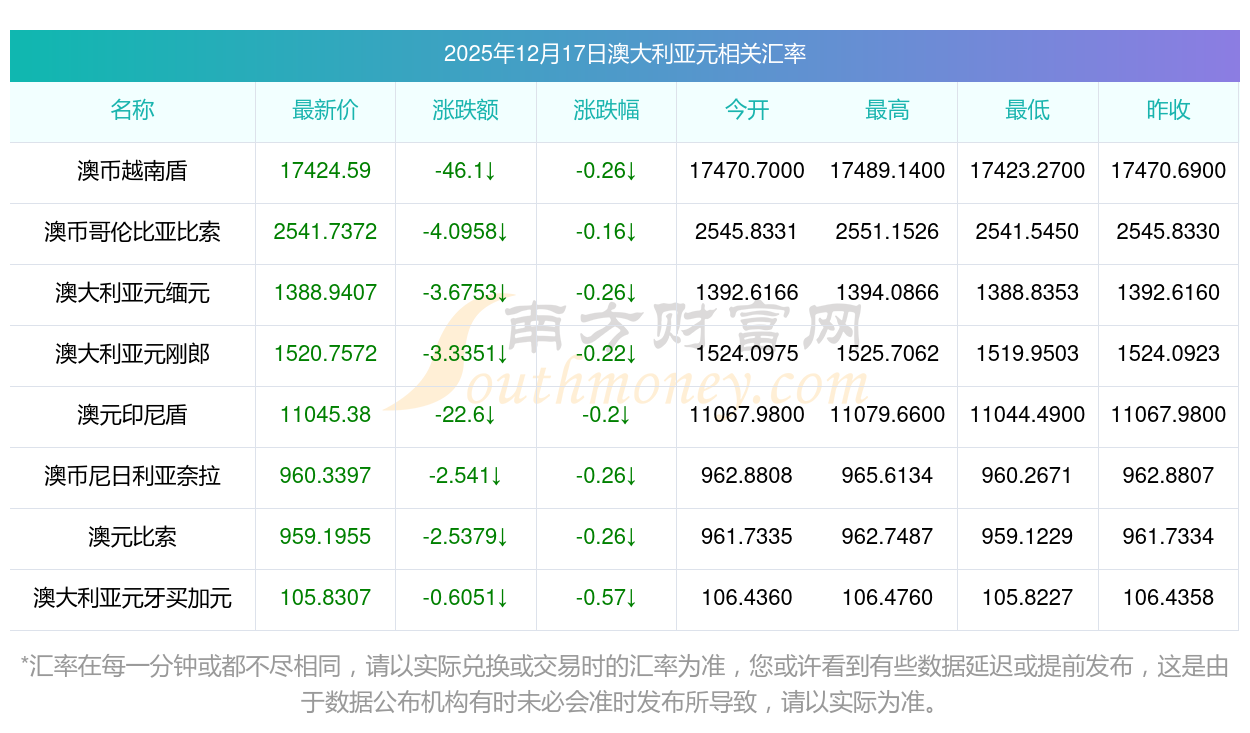 2025年12月17日澳大利亞元相關(guān)匯率查詢