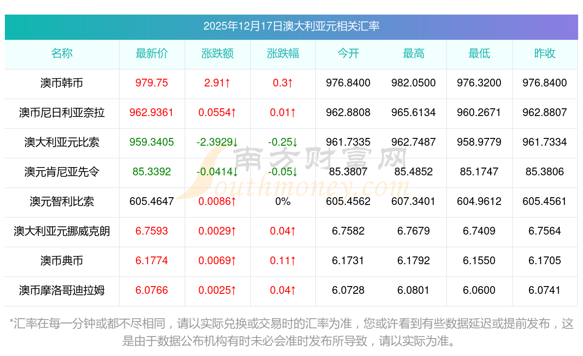 2025年12月17日澳大利亞元相關(guān)匯率查詢