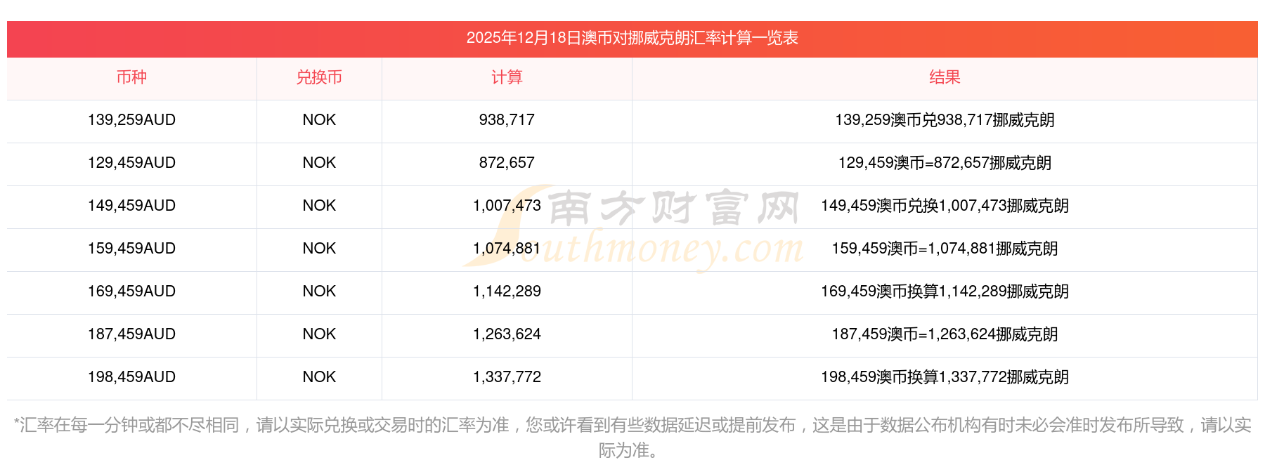 澳幣兌挪威克朗今日匯率查詢表2025/12/18