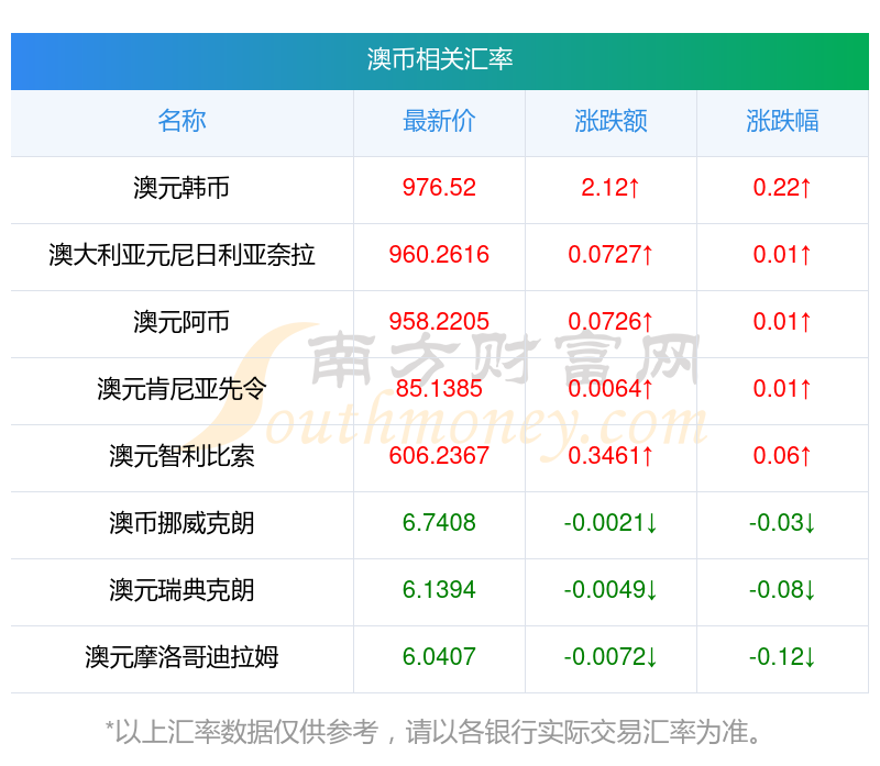 南方財(cái)富網(wǎng)為您提供澳幣對(duì)挪威克朗匯率最新價(jià)格詳情。