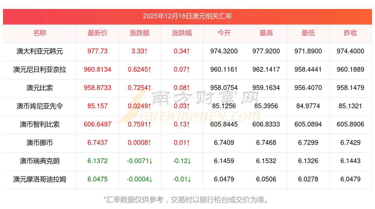 2025年12月18日澳元相關(guān)匯率查詢(xún)