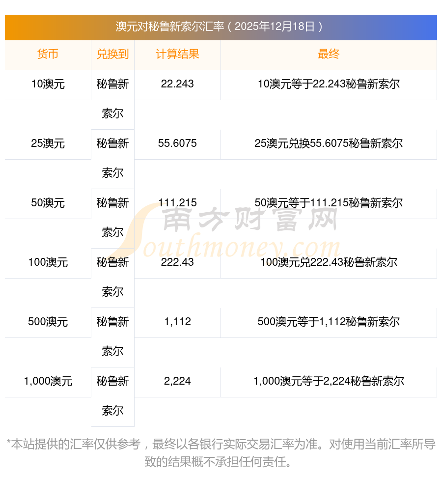 今天匯率更新!2025年12月18日51澳元兌換秘魯新索爾是多少?