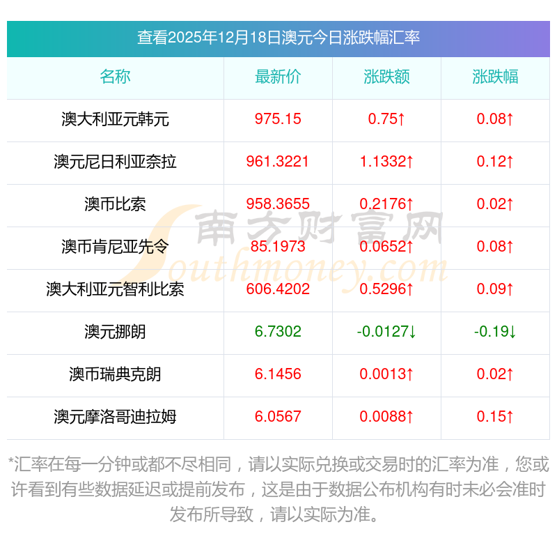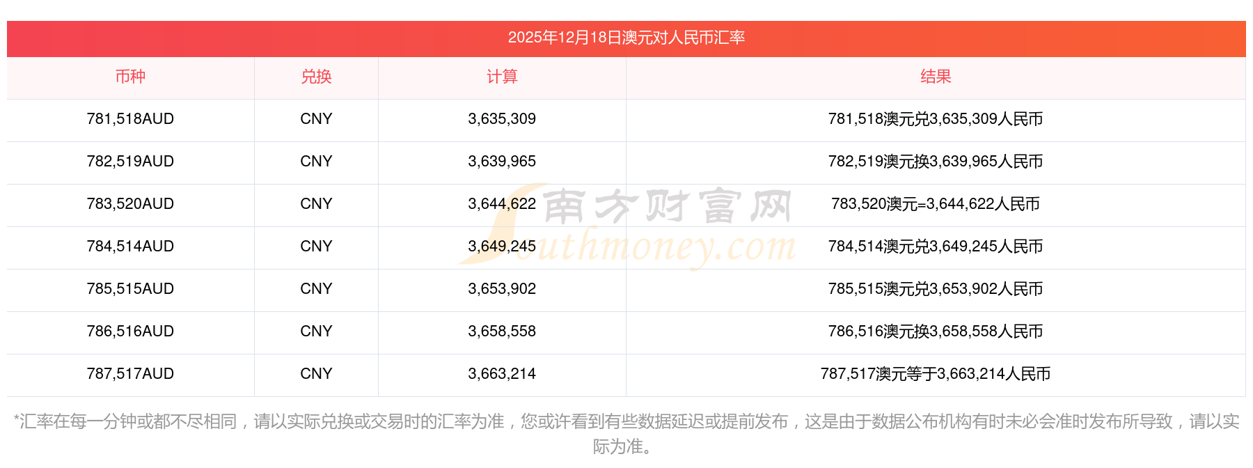 今6澳元兌換人民幣的匯率是多少 附查詢方法2025年12月18日