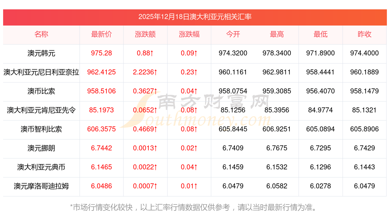 2025年12月18日澳大利亞元相關(guān)匯率查詢