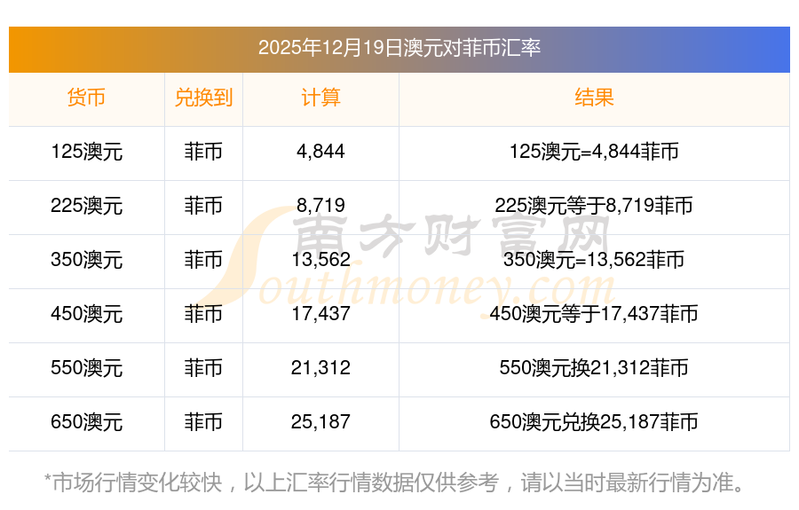 不同貨幣折算:現(xiàn)在1020澳元對(duì)菲幣匯率多少?12月19日