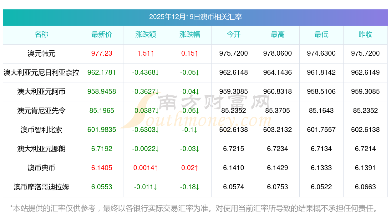 2025年12月19日澳幣相關(guān)匯率查詢(xún)