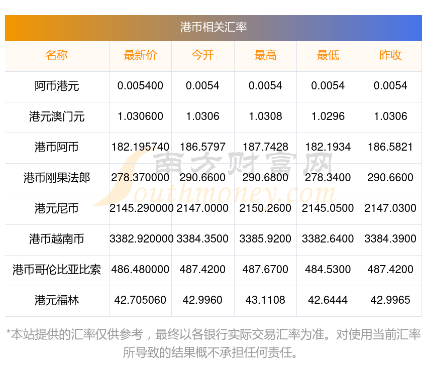 2025年11月8日港幣相關(guān)匯率查詢