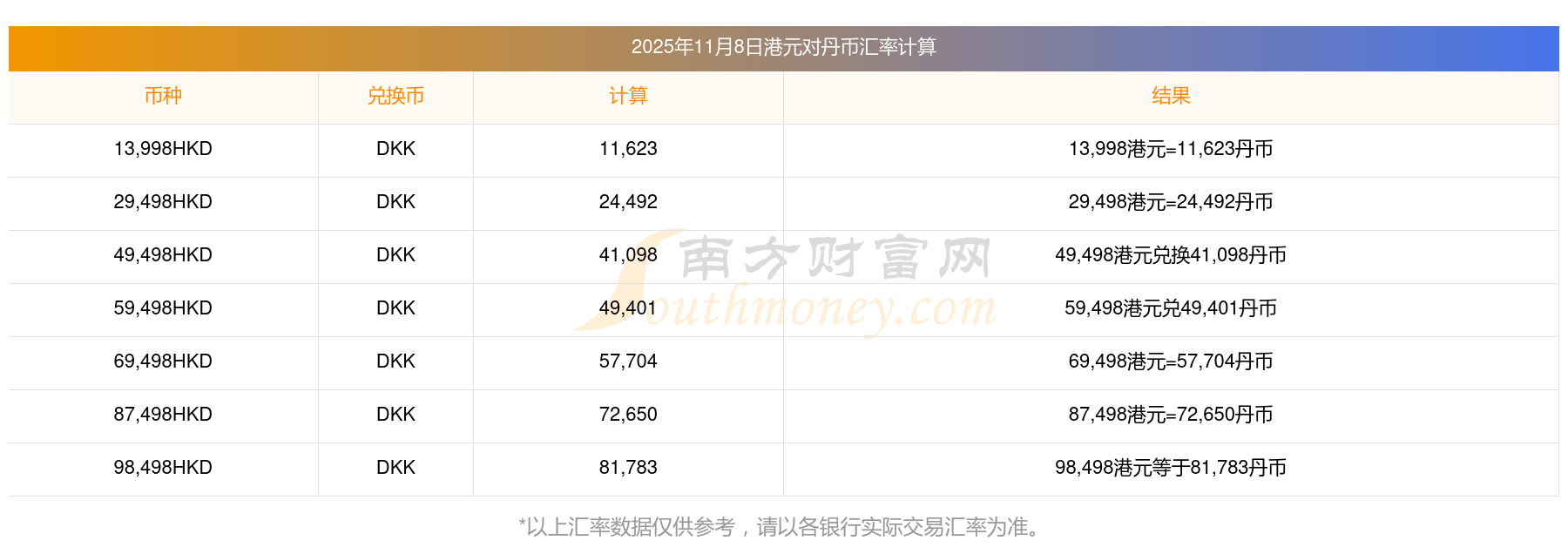 今日35港元兌換丹幣匯率調(diào)整多少? 2025/11/8