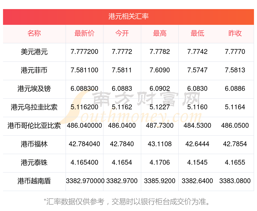 南方財富網(wǎng)為您提供港元對雷亞爾匯率最新價格詳情。