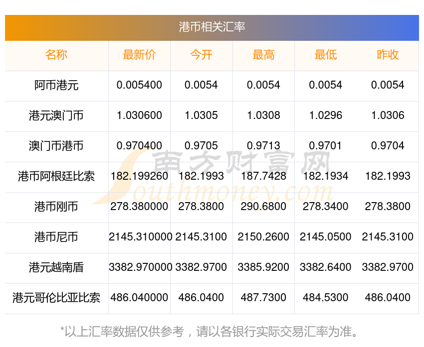 每日匯率_用港幣對尼幣匯率表查詢11月9日