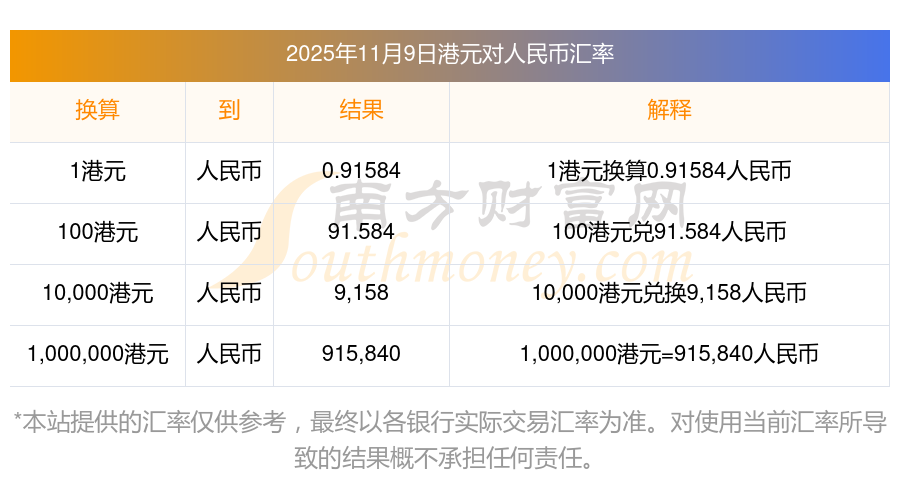 匯率行情 | 13.5萬港元轉換人民幣匯率是多少? 11-9