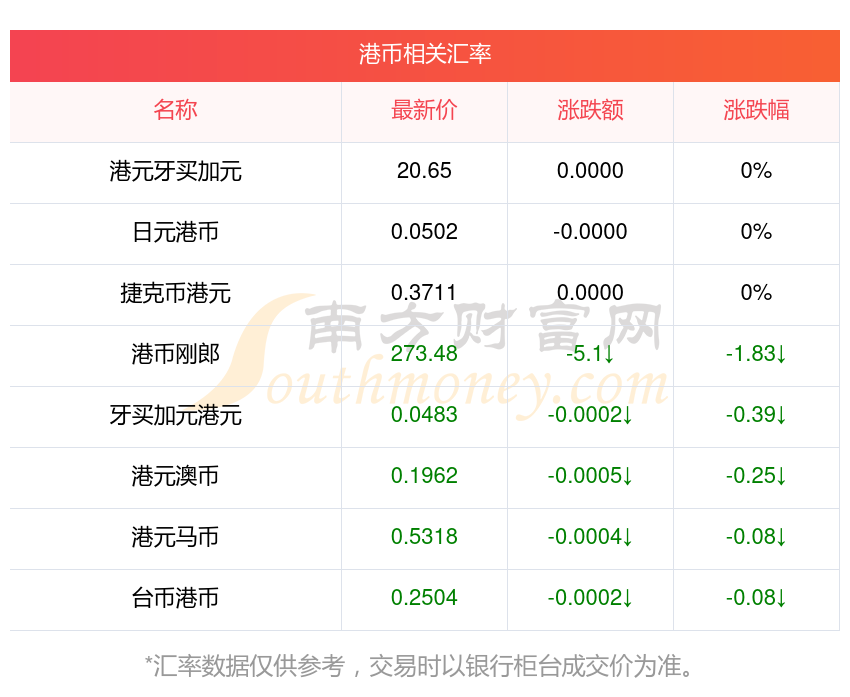 南方財富網(wǎng)為您提供港幣對比索匯率最新價格詳情。