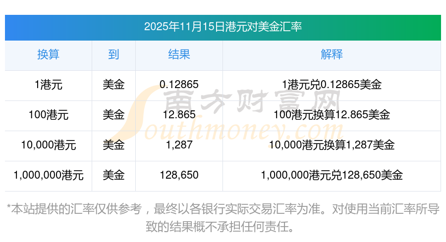 2025年11月15日匯率行情:4港元對(duì)美金匯率多少
