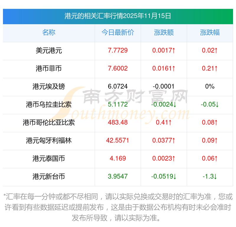 2025年11月15日港元相關(guān)匯率查詢