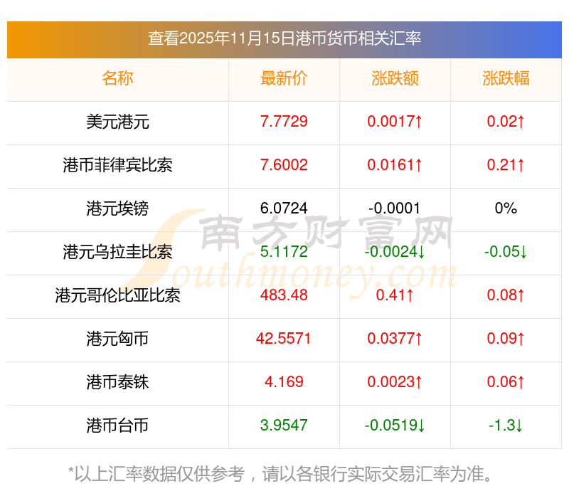 2025年11月15日港幣兌換比索最新匯率:2.356790,今開:2.3546,昨收:2.3547,最高:2.3690,最低:2.3546。