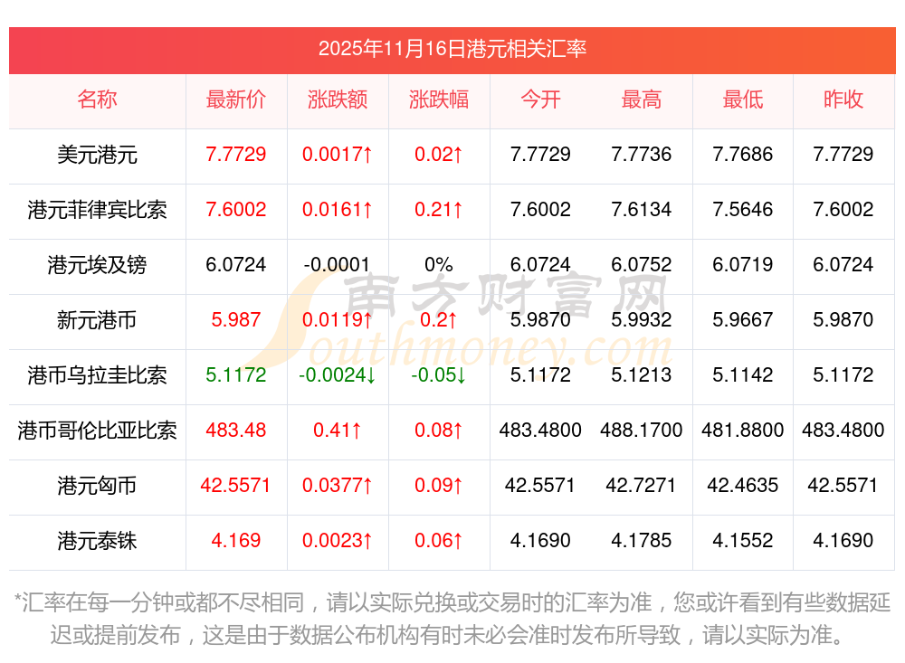 根據(jù)2025年11月16日匯率計算,HKD兌換ARS匯率最新價180.564400:今日開價180.5644,昨日收價180.5644,最高價181.3783,最低價180.3958。
