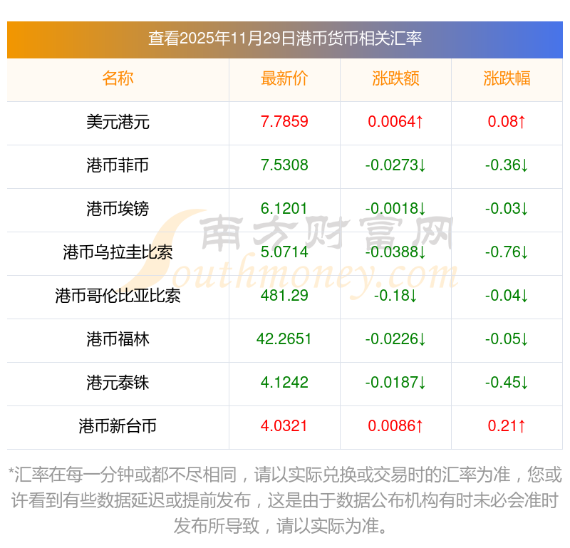 根據(jù)2025年11月29日匯率,港幣兌換埃鎊匯率最新價6.120100,今開價6.1201,昨收價6.1201,最高價6.1238,最低價6.1178。