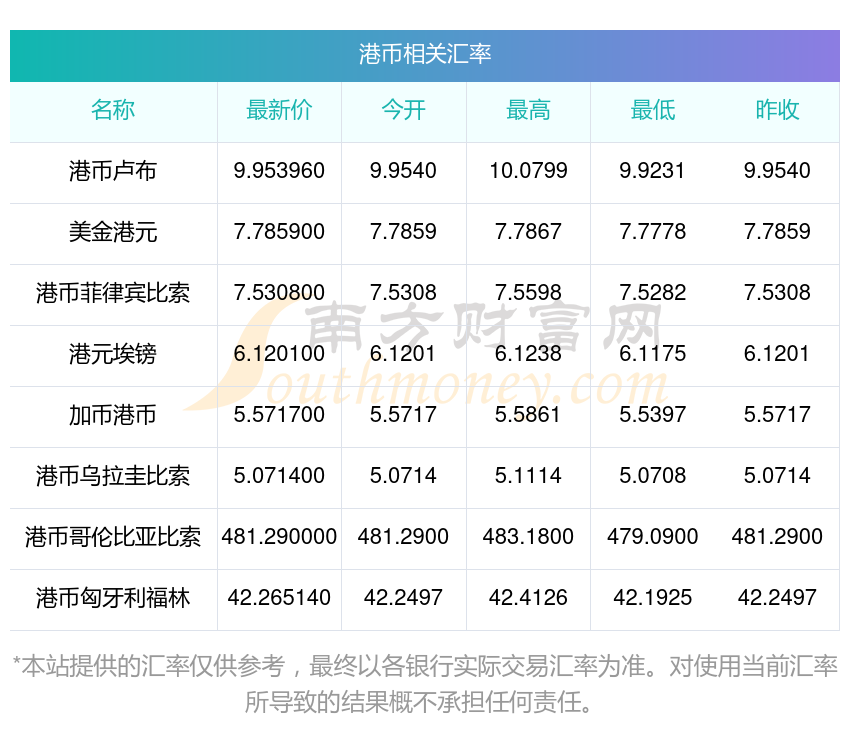 南方財(cái)富網(wǎng)為您提供港幣對蘭幣匯率最新價(jià)格詳情。