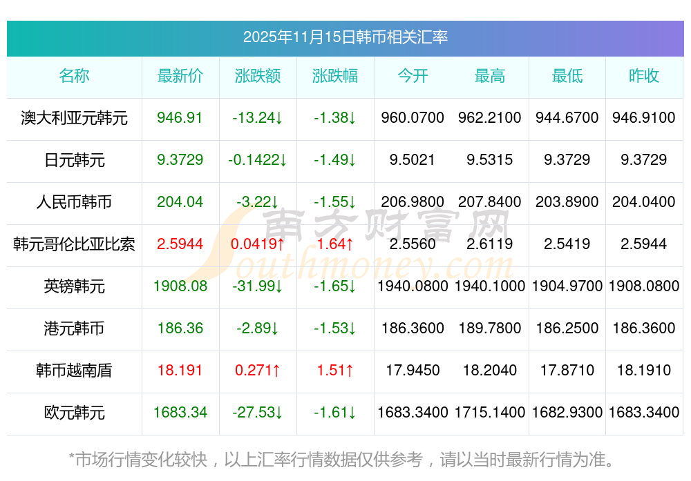 2025年11月15日韓幣相關(guān)匯率查詢
