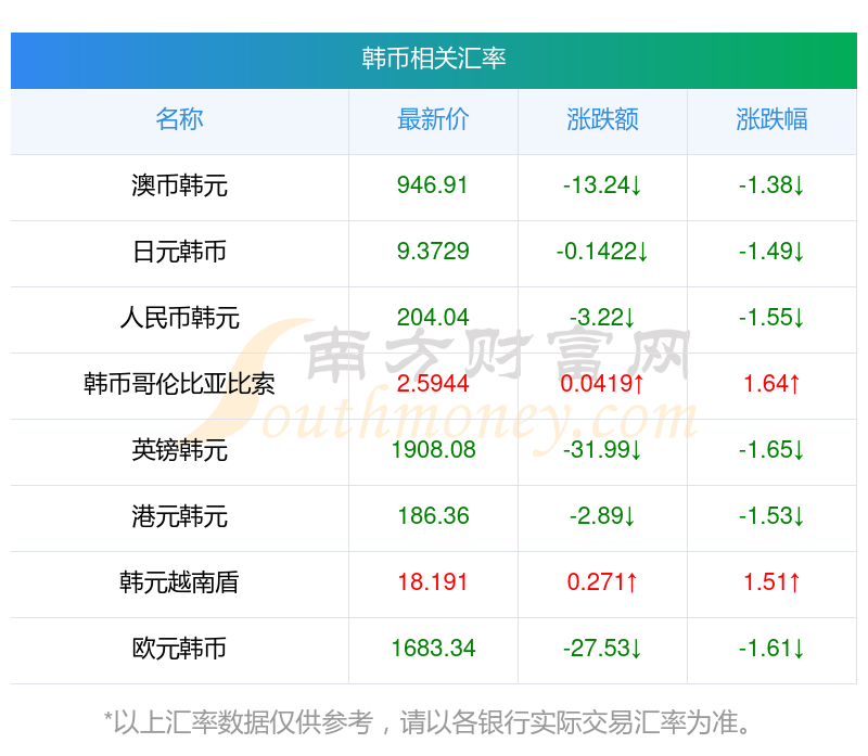 南方財(cái)富網(wǎng)為您提供韓幣對(duì)哥倫比亞比索匯率最新價(jià)格詳情。