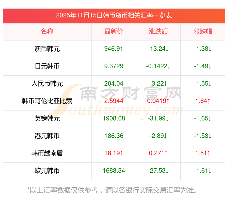 根據(jù)2025年11月15日匯率,韓幣兌換泰國幣匯率最新0.022371,今開0.0220,昨收0.0224,最高0.0224,最低0.0219。