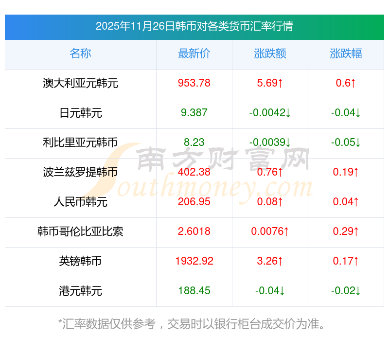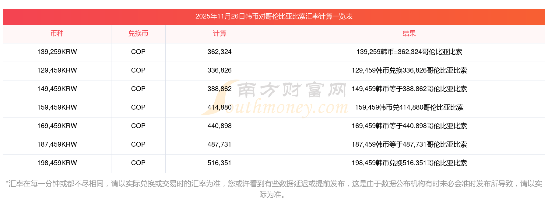 今日韓幣對哥倫比亞比索匯率多少?_匯率查詢2025年11月26日