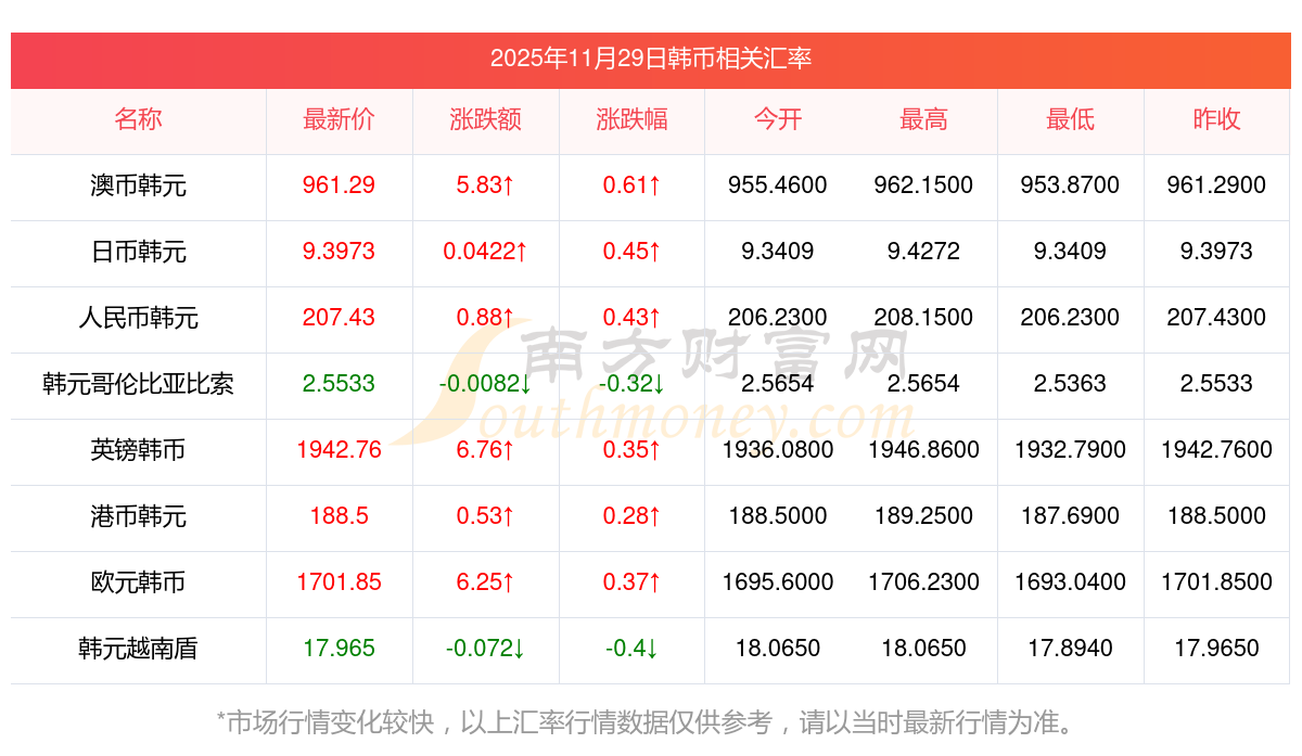 2025年11月29日韓幣相關(guān)匯率查詢
