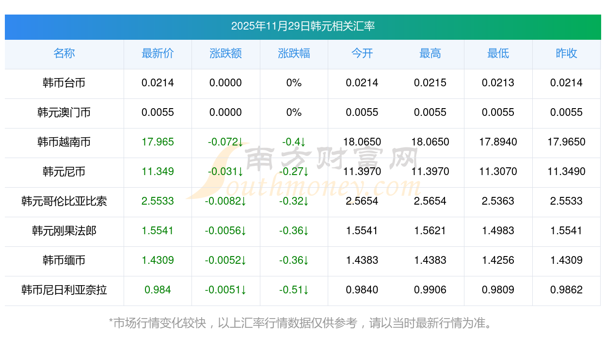 南方財富網(wǎng)為您提供韓元對尼幣匯率最新價格詳情。