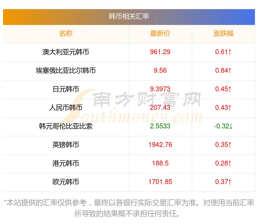 南方財富網(wǎng)為您提供韓幣對越南幣匯率最新價格詳情。