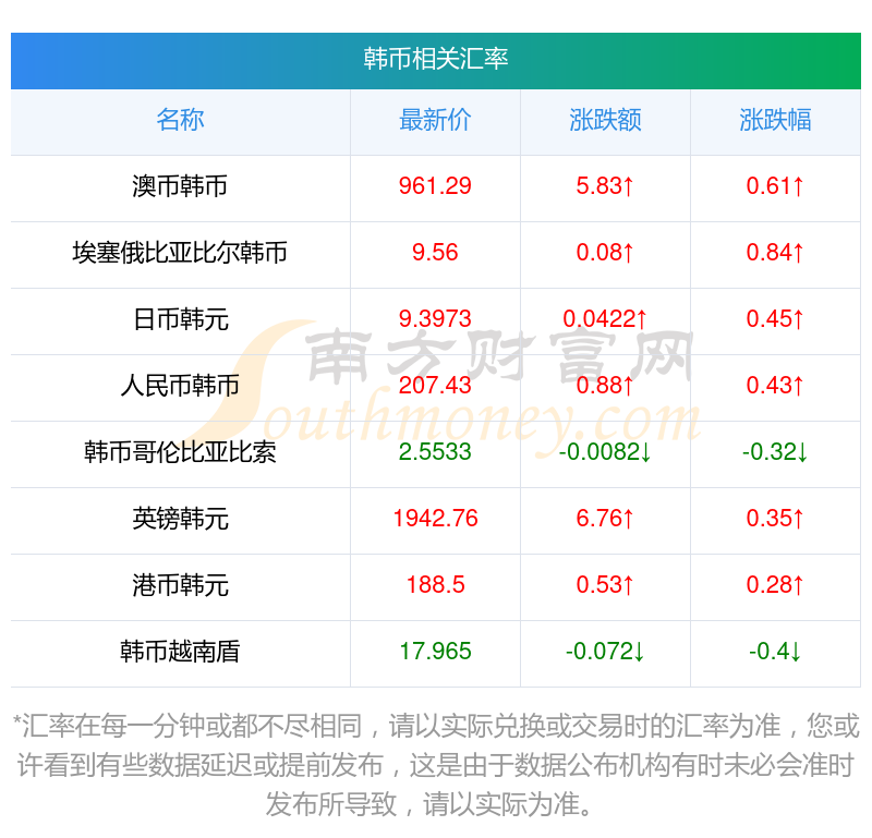 南方財(cái)富網(wǎng)為您提供韓幣對(duì)摩洛哥迪拉姆匯率最新價(jià)格詳情。