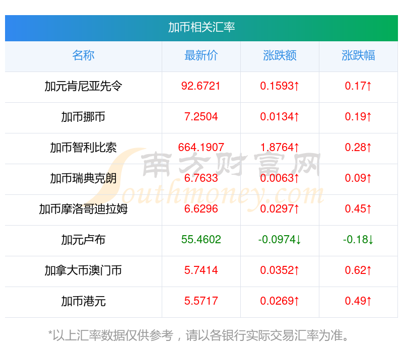 2025年11月29日最新消息,加幣兌換阿幣最新匯率為1037.820300,今開為1033.7824,昨收為1037.8203,最高為1040.6803,最低為1032.2742。