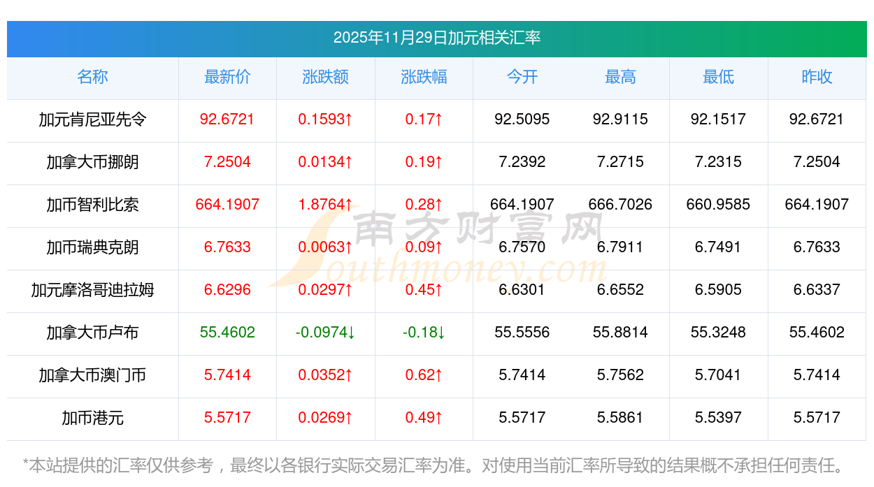 根據(jù)2025年11月29日匯率計算,CAD兌換THB匯率最新價22.980000:今開價22.9700,昨收價22.9800,最高價23.0500,最低價22.8900。