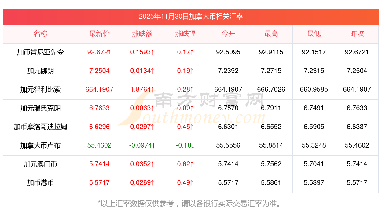 根據(jù)2025年11月30日匯率,加拿大幣兌換新西蘭幣匯率最新價1.247900,今開價1.2479,昨收價1.2479,最高價1.2512,最低價1.2438。
