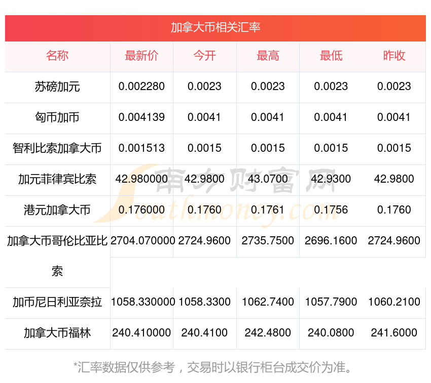 2025年12月28日加拿大幣相關(guān)匯率查詢