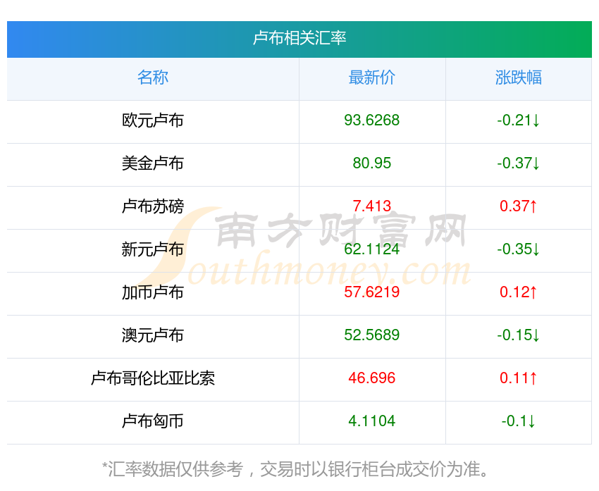 南方財富網(wǎng)為您提供盧布對蘇磅匯率最新價格詳情。