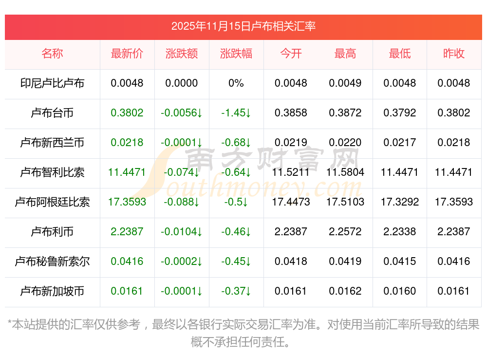 根據(jù)2025年11月15日匯率計(jì)算,RUB兌換SGD匯率最新價(jià)0.016060:今開價(jià)0.0161,昨收價(jià)0.0161,最高價(jià)0.0162,最低價(jià)0.0160。