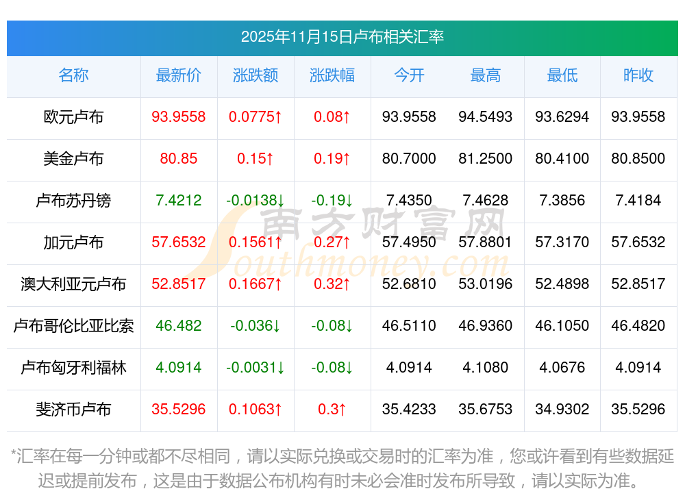 2025年11月15日盧布相關(guān)匯率查詢
