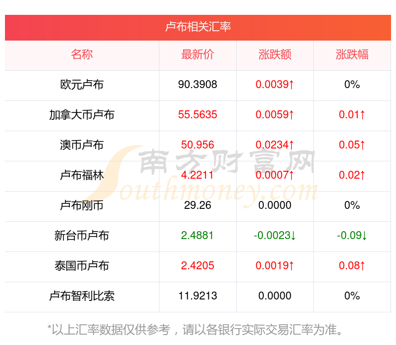 南方財(cái)富網(wǎng)為您提供盧布對(duì)蘭特匯率最新價(jià)格詳情。