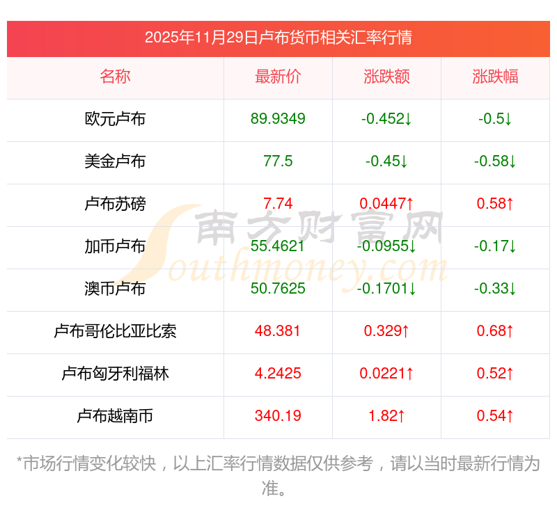 2025年11月29日盧布相關(guān)匯率查詢