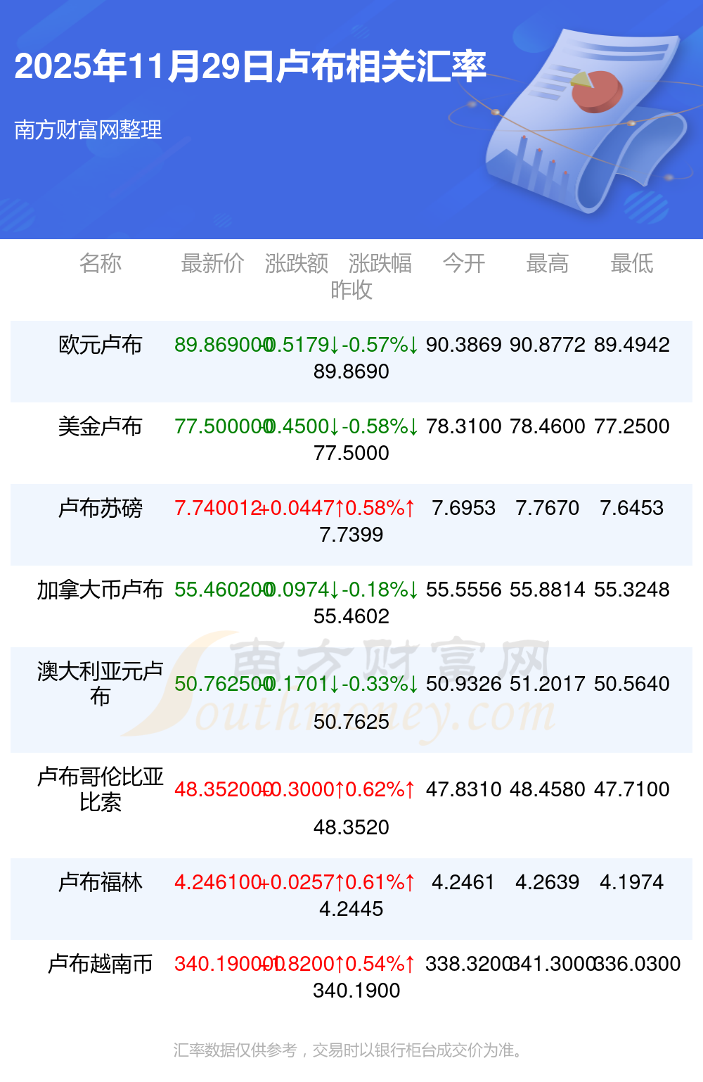2025年11月29日盧布相關(guān)匯率查詢(xún)